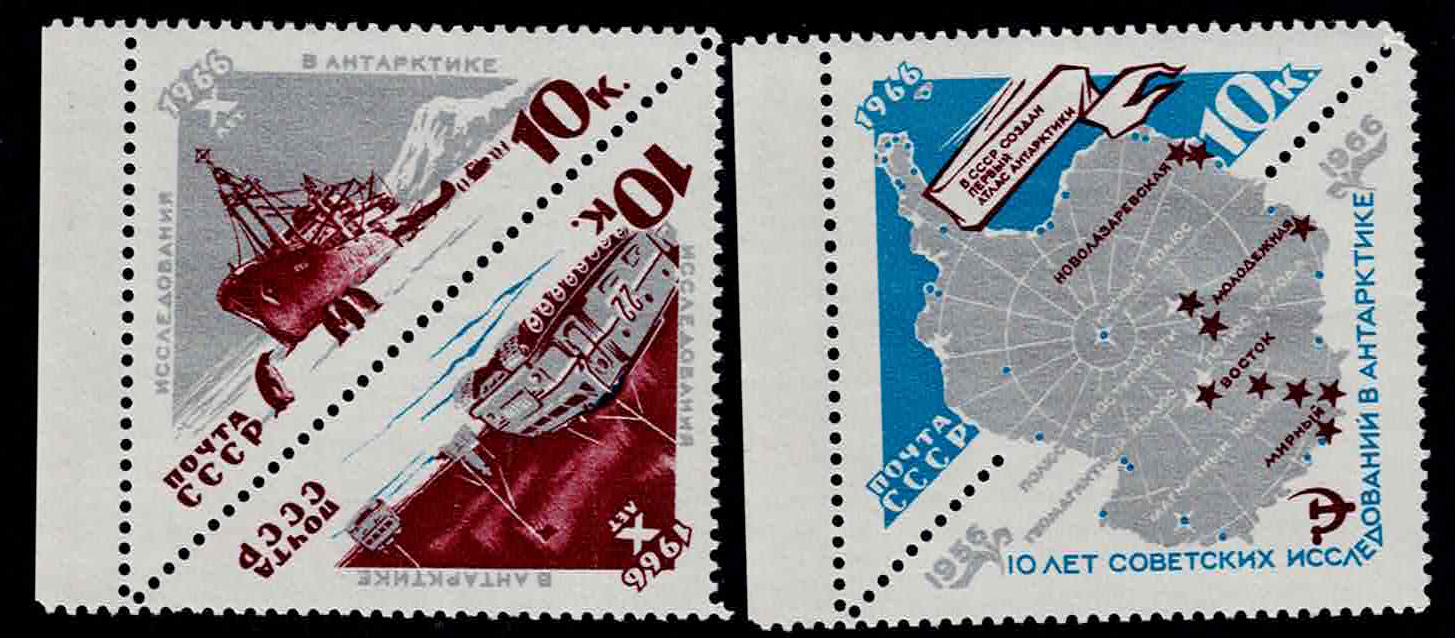 | Russia 1966: EXPLORATION in ANTARCTICA, complete set, MNH, cat. value=$ 4.50 | $1.00 | Russia | 3162-4 | $4.50 | MNH | Mario Rapa |
