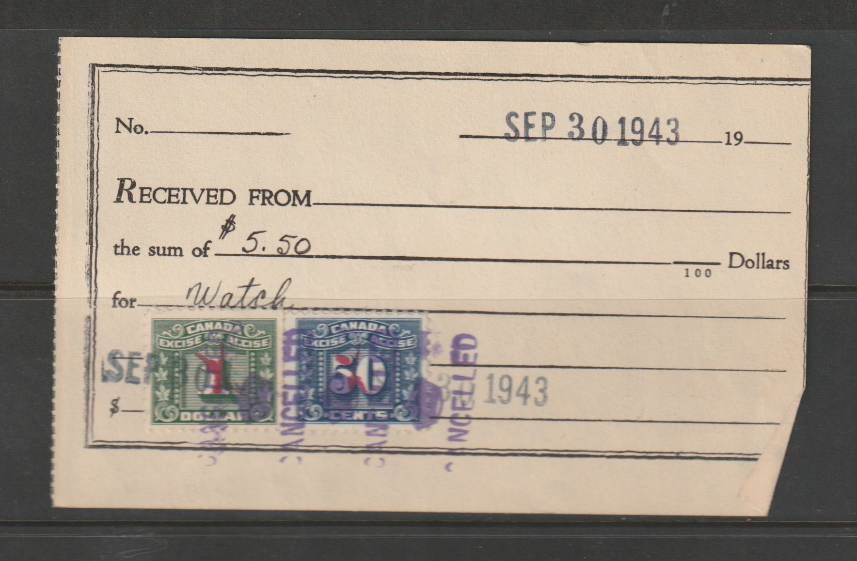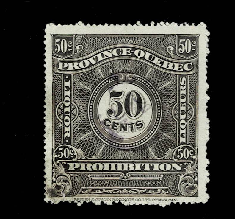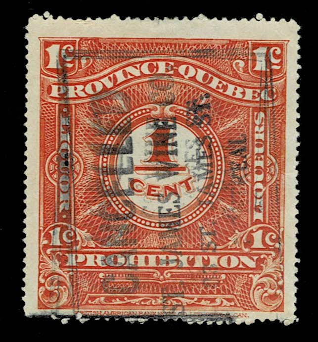 | Quebec revenue, stock transfer tax, 1907 series with English inscription, 10c carmine, used on a stock certificate | $5.00 | Canada | van Dam QST2 | $20.00 | G/VF | Dave Hannay |