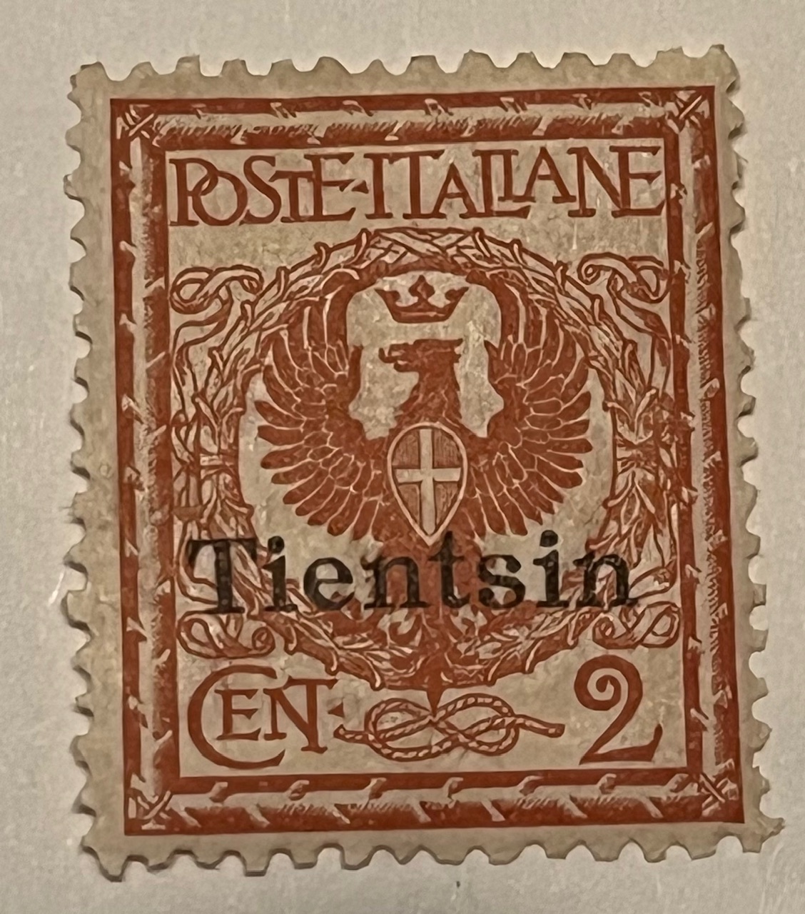 | italian offices abroad, Tientsin China # 15 mh, variety not in catalogue half cent imprint shifted to the left and partially missing on the stamp. Catalogue value listed of $ 350 is for regular stamp, variety estimated at $ 500 | $80.00 | italian offices abroad, Tientsin | 15 | $350.00 | mh good, minor diagonal crease not even visible in picture | Mattia Guida |