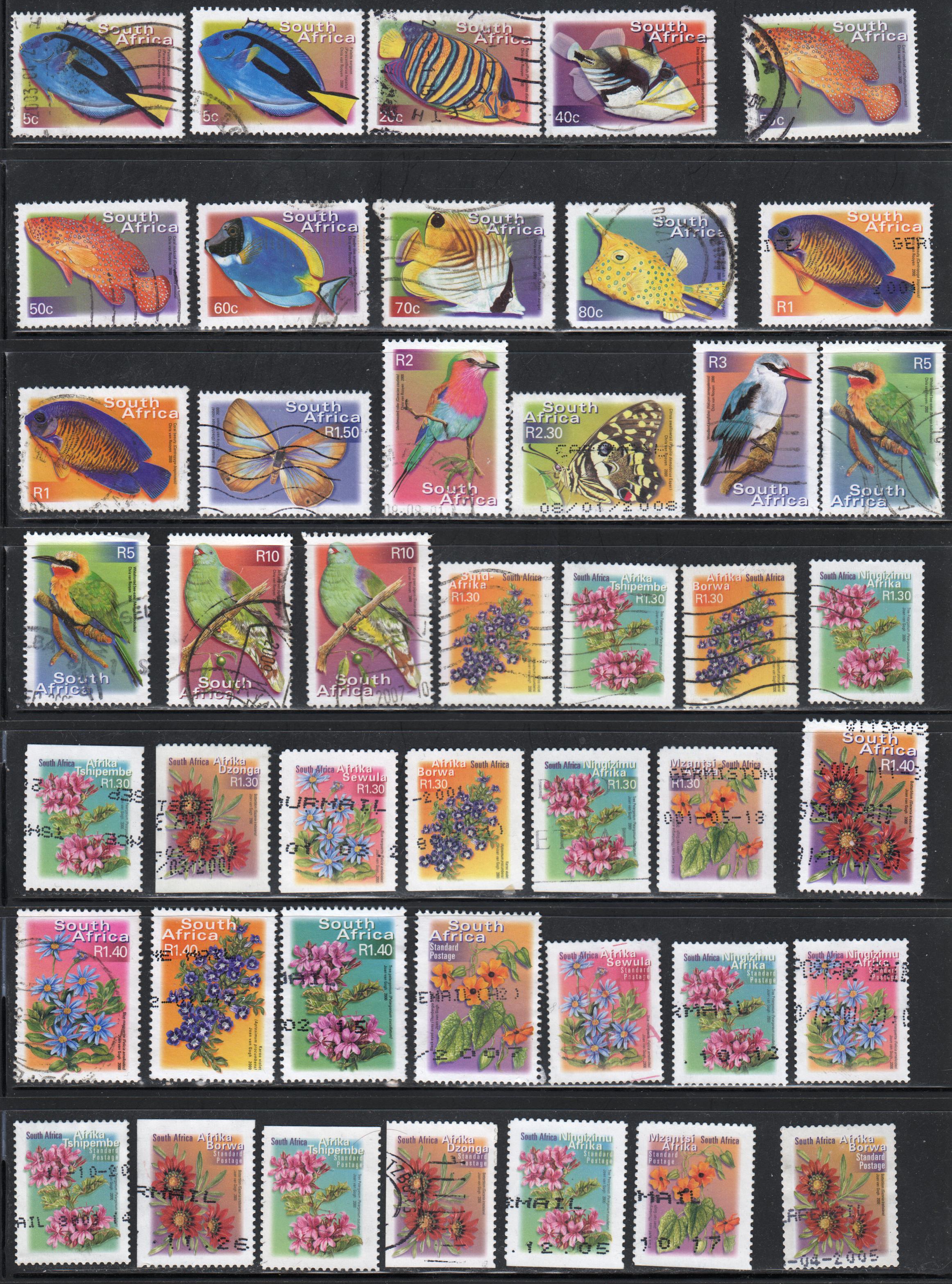 | South Africa, 64 VF used stamps, all off paper, from South Africa's 7th definitive series. 64 stamps represents a bit less than half of the stamps and perforation varieties listed by Scott. Note that, even as of their 2020 catalogue, Scott has not posted a catalogue value for some of the stamps in this lot. To arrive at a catalogue value of $36.50, I used the 25 cent minimum for these. | $7.50 | South Africa | | $36.50 | VF used | Ralph Wyndham |