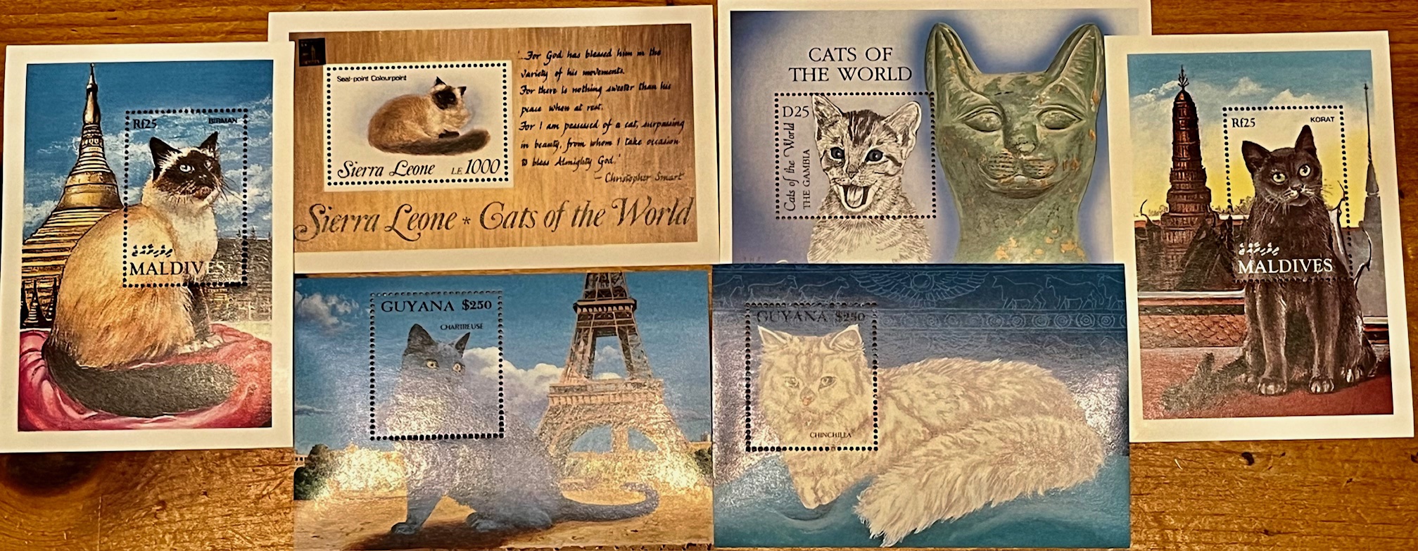 | Cats 6 souvenir sheets various countries, mnh | $6.00 | Gambia,Guyana,Maldives,Sierra Leone | | | mnh fine | Geoff Solway |