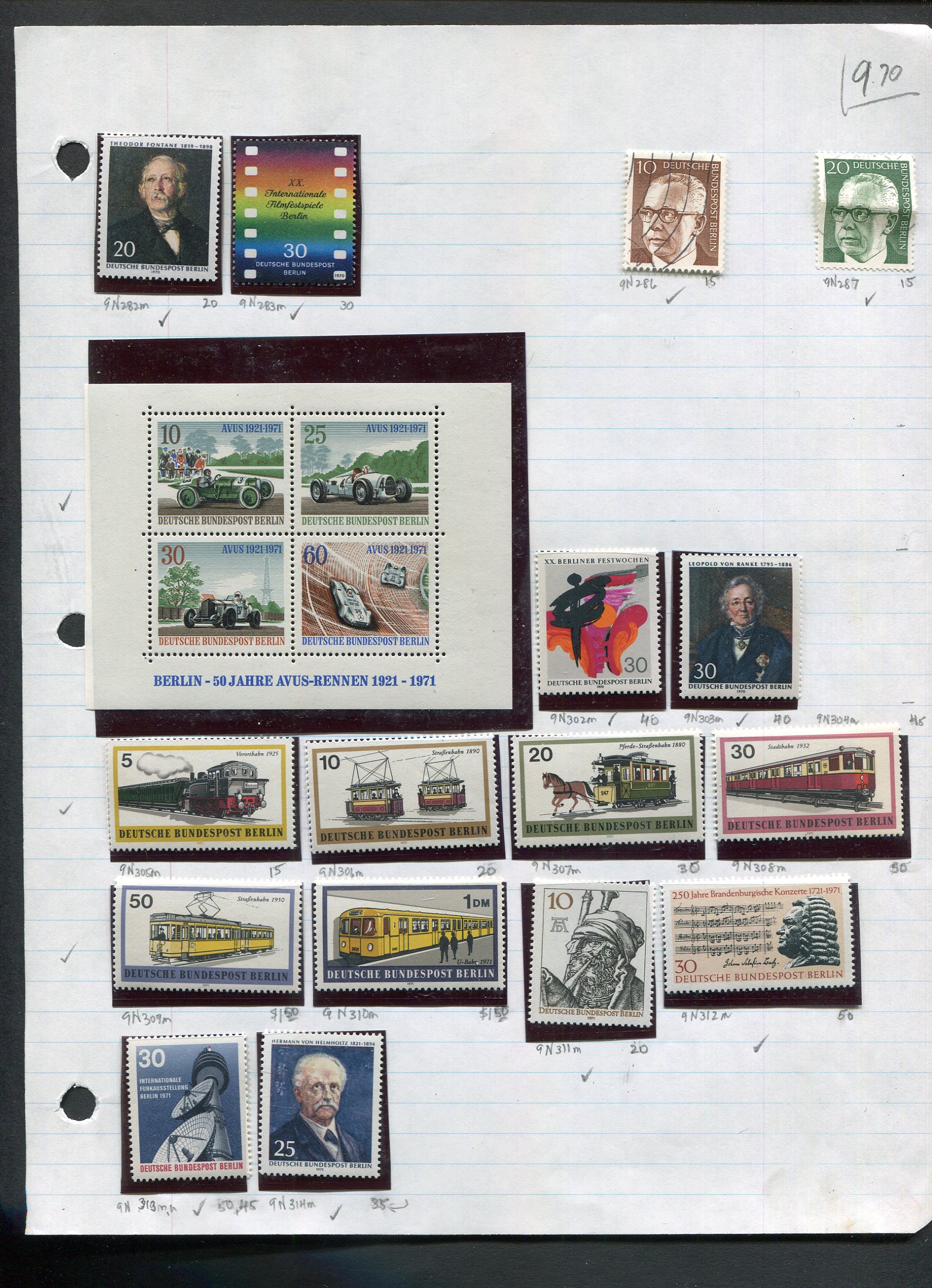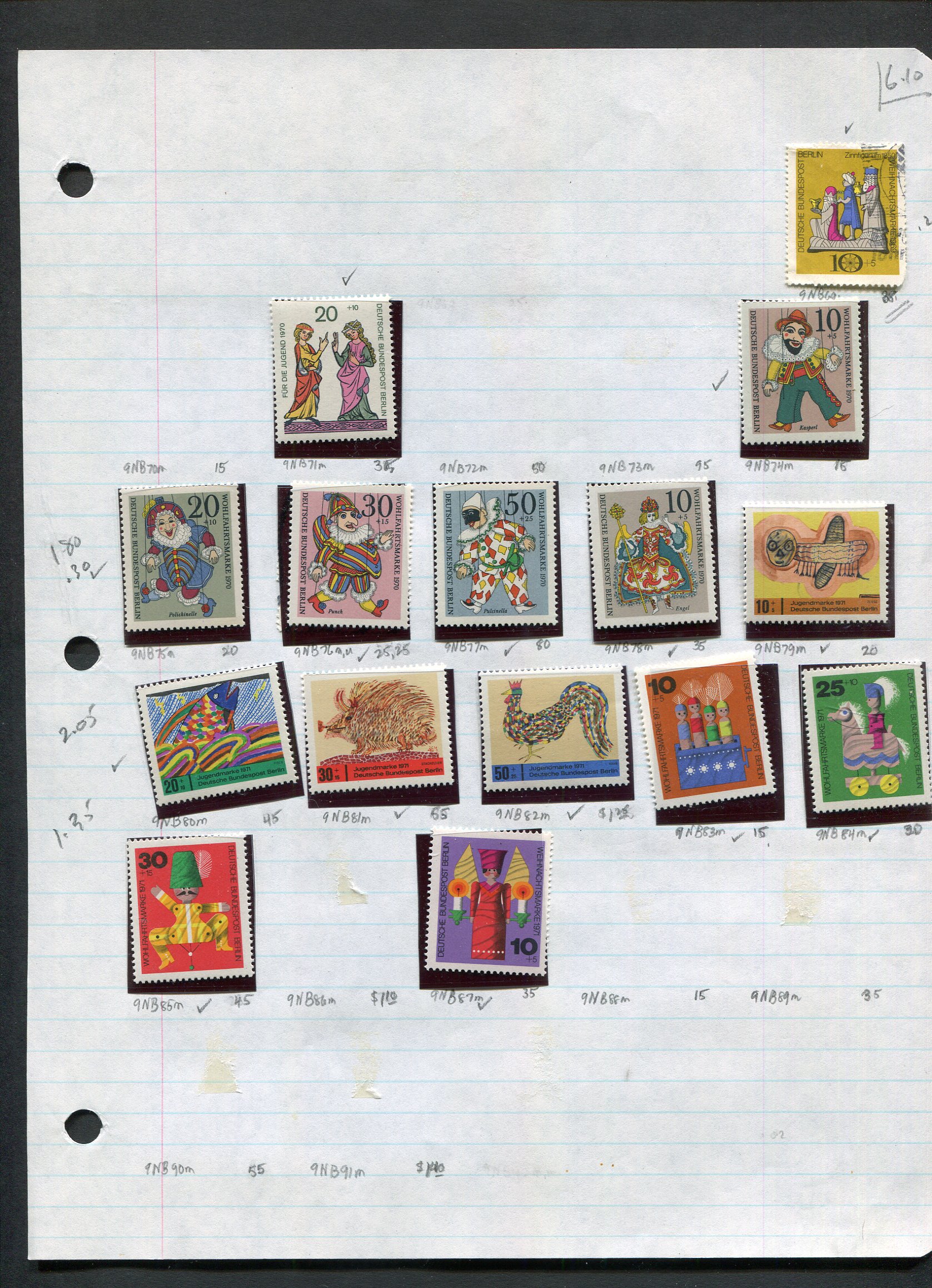 | Germany BERLIN - 59 MNH + 2 SS MH + 6 used - CV $45 ( all are in mounts on loose leaf paper, not all pages shown below) | $10.00 | Berlin | | $0.00 | | Bill Findlay |