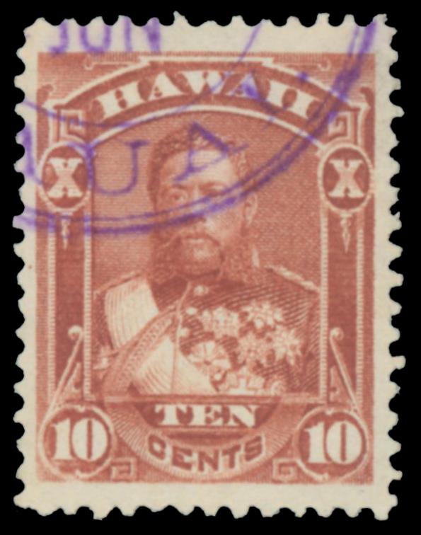 802 1417258 2022-11-16 44 1884 10c Red brown XF 90J Used it is genuine used, with a purple Kauai, HI. cds cancel. http://psestamp.com/Cert/1417258 206003