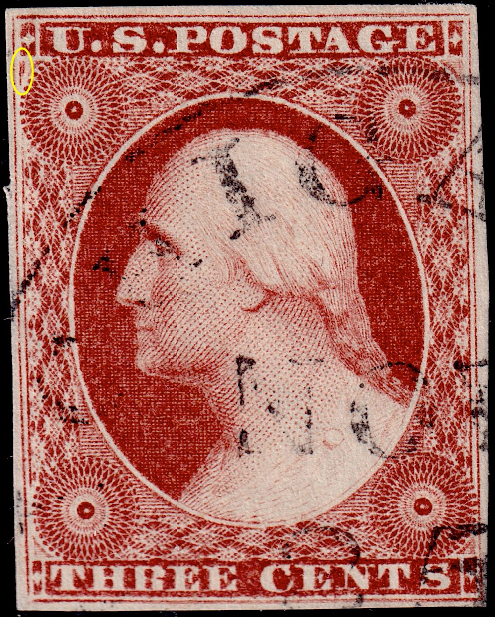 Variety #11 One Vertical Line Recut in Upper Left Triangle