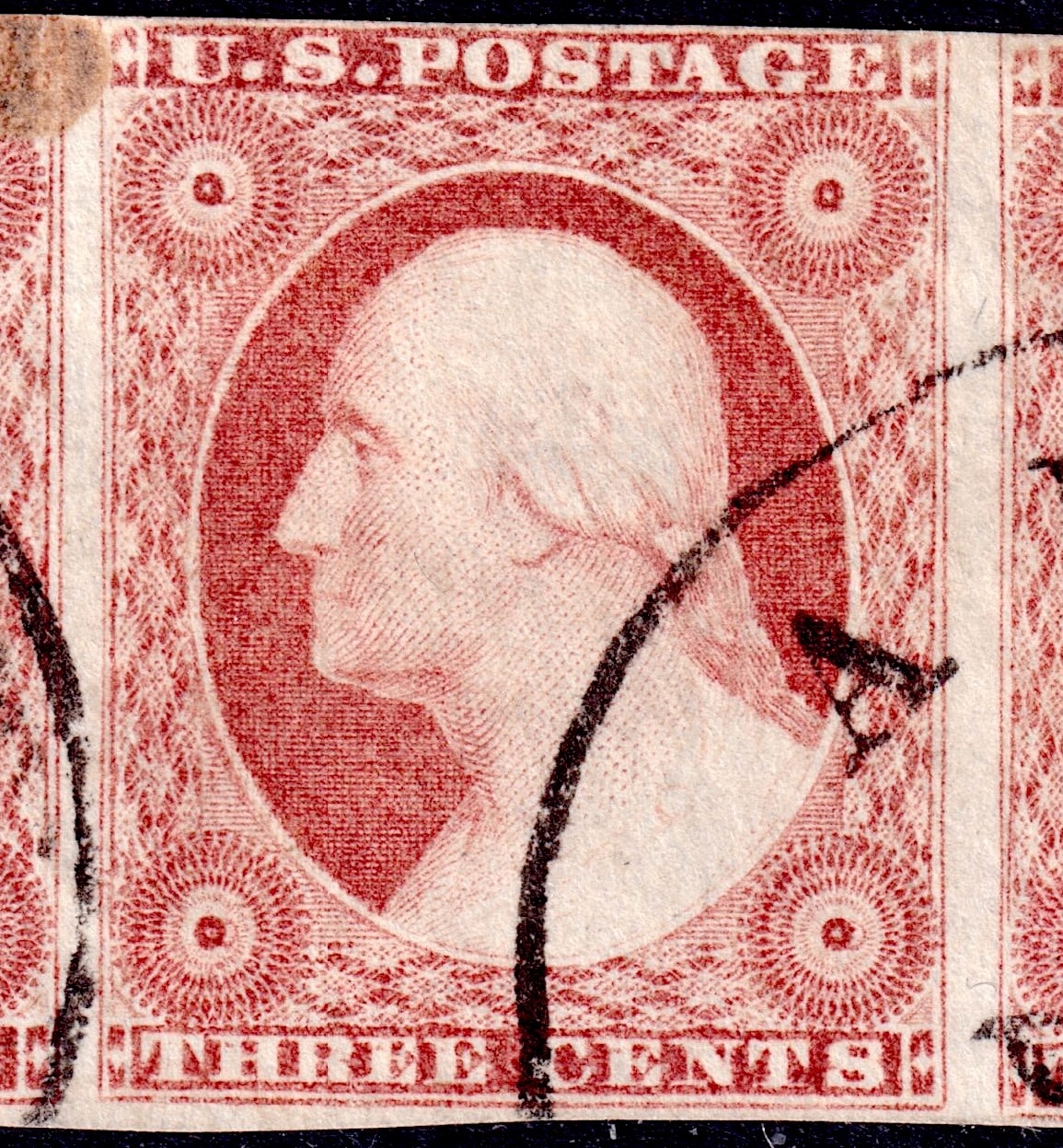 Relief B Shifted Transfer--Triple--Evident in Lower Left Rosette, Lower Right Rosette, and Left Side of White Oval ../plate/hiresimages/220321262.jpg ../plate/thumbs/1472601959.jpg