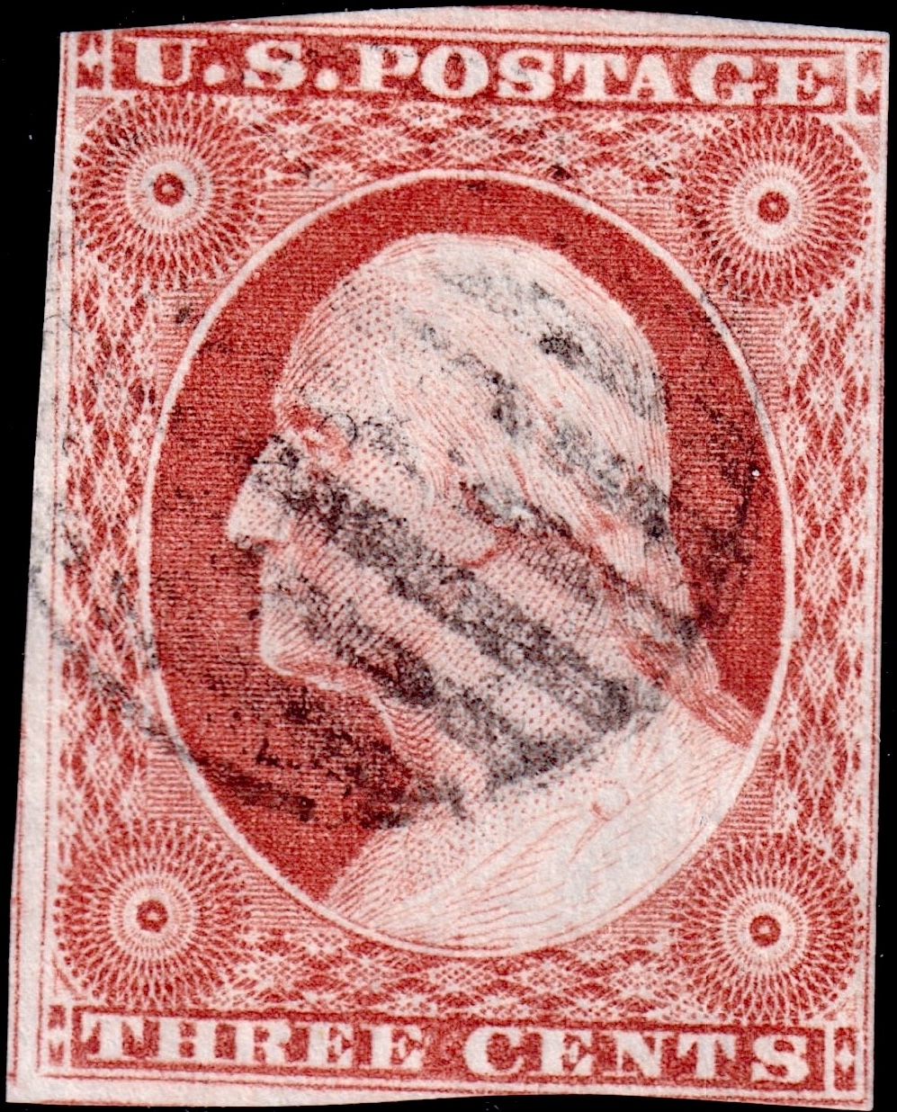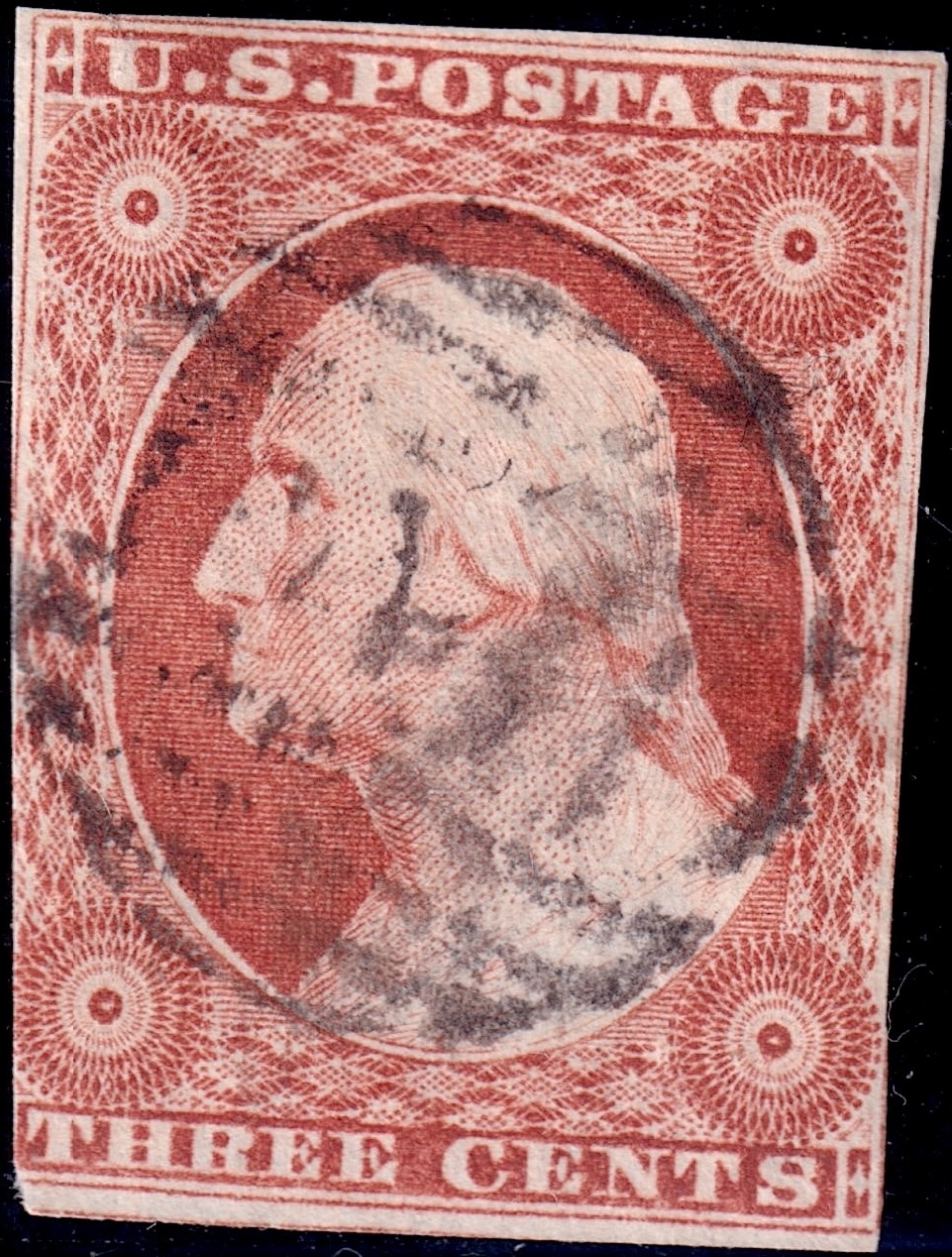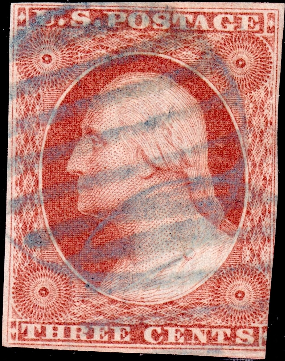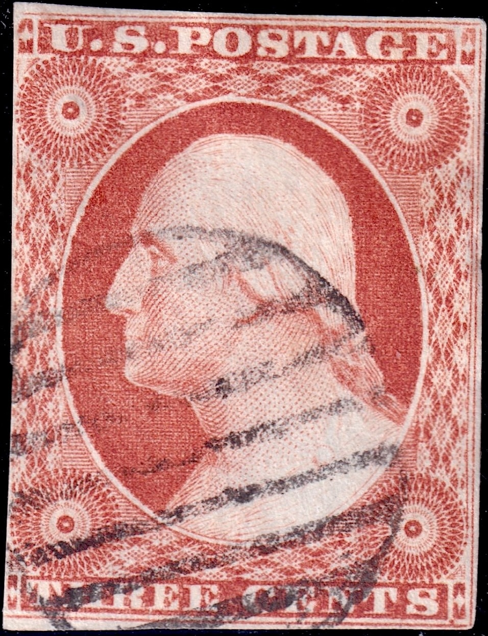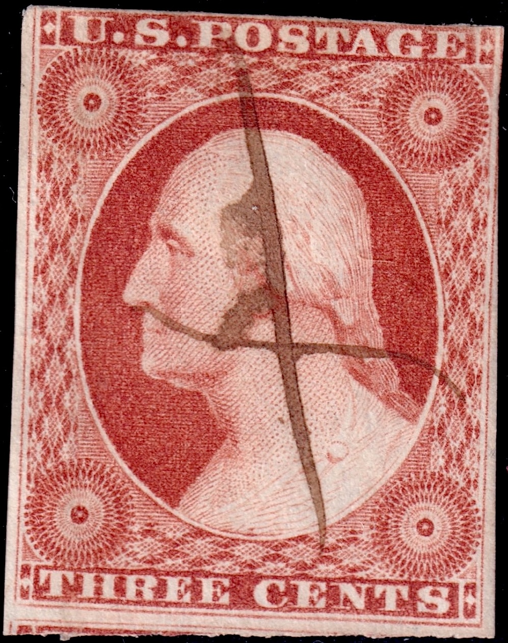 Variety #11 One Vertical Line Recut in Upper Left Triangle--Runs up the Entire Left Edge of the Upper Left Diamond Block.
