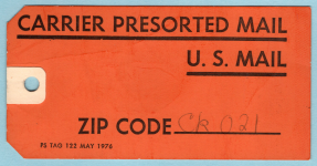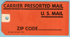 1787 PS TAG 122 Carrier Presorted Mail Both sides the same. May 1976